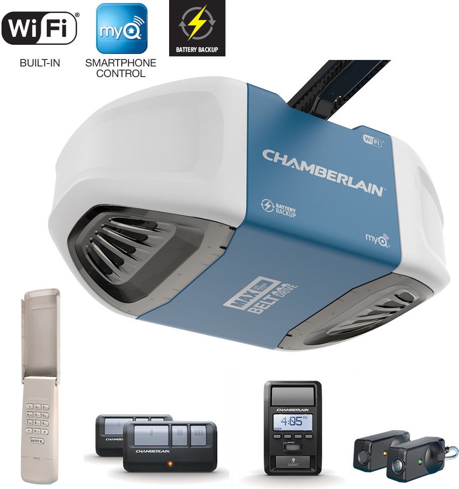 Chamberlain 1 25 Hp Whisper Drive Belt Drive Garage Door Opener With Myq And Wi Fi Compatibility And Battery Back Up In The Garage Door Openers Department At Lowes Com
